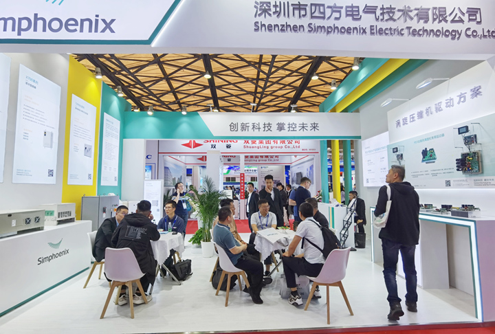 Shenzhen Simphoenix Electric Technology Co.,Ltd. (hereinafter referred to as “Simphoenix”) showcased a series of products, including independently developed cabinet type frequency converters for central air conditioning, magnetic levitation centrifugal unit frequency converters, and vortex machine drivers, at the exhibition, which attracted widespread attention.